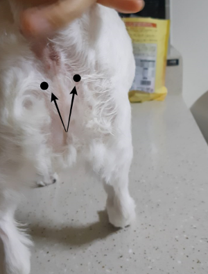 항문 아래쪽을 만져보았을 때 통통하게 만져지는 것이 있다면 분비물이 충분히 차 있는 상태인 것입니다.