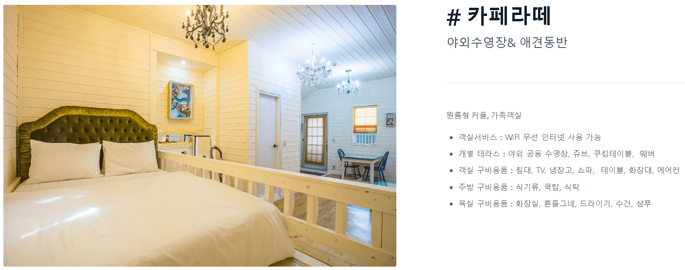 바다네 스파펜션의 객실 4종류 설명이에요. 스파가 없는 방은 개별바비큐를 할 수 있는 것 같습니다.